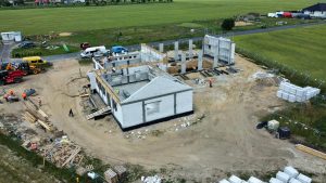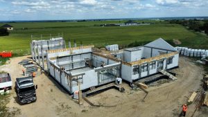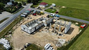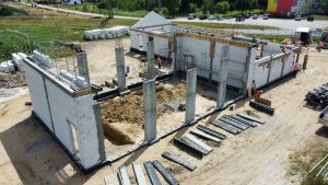 Na półhektarowej działce powstaje parterowy budynek o powierzchni całkowitej ponad 500 mkw. Znajdzie się w nim hala garażowa na cztery pojazdy, sale wielofunkcyjne, szatnie, biura, magazyn, aneks kuchenny, toalety i pralnia.