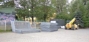 Przez kolejne miesiące trwały prace przygotowawcze. Inwestor uzyskał wszelkie pozwolenia i w środku tego tygodnia przystąpił do głównych prac budowlanych. Teren wraz ze wszystkimi parkingami został zabezpieczony za pomocą taśmy (w następnych dniach ustawione zostanie trwałe ogrodzenie), tak aby nie można było stawiać tu samochodów i przechodzić tuż obok obiektu. To ważne, bo prace rozpoczęto od demontażu części dachu.