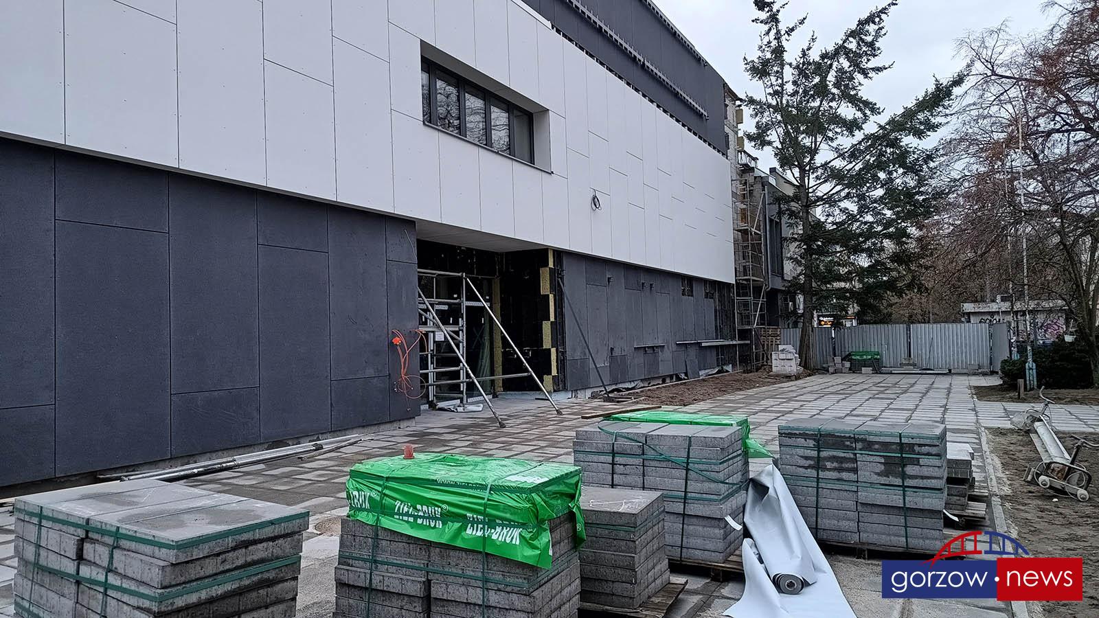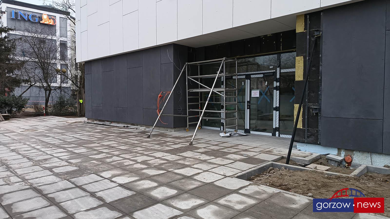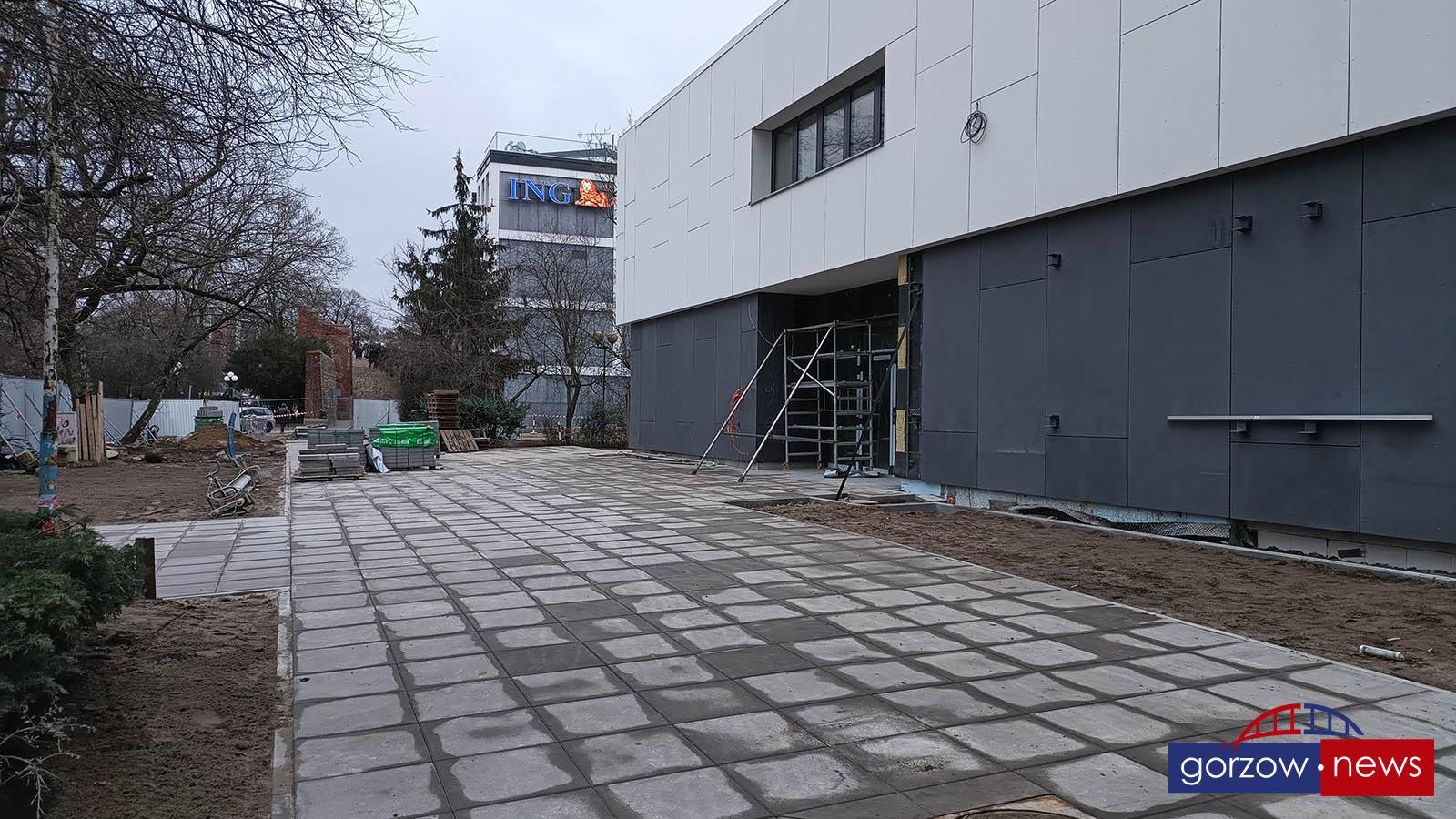 Postępy w pracach przy wykańczaniu sali koncertowej dla Miejskiego Centrum Kultury w przebudowanym budynku po banku PEKAO zaprezentowaliśmy dziś na łamach GORZÓW.NEWS w tekście – Zajrzeliśmy do budowanej sali koncertowej MCK! Jak postępy? Kiedy pierwszy koncert? (zdjęcia). Teraz spoglądamy na zmieniającą się przestrzeń wokół budynku.
