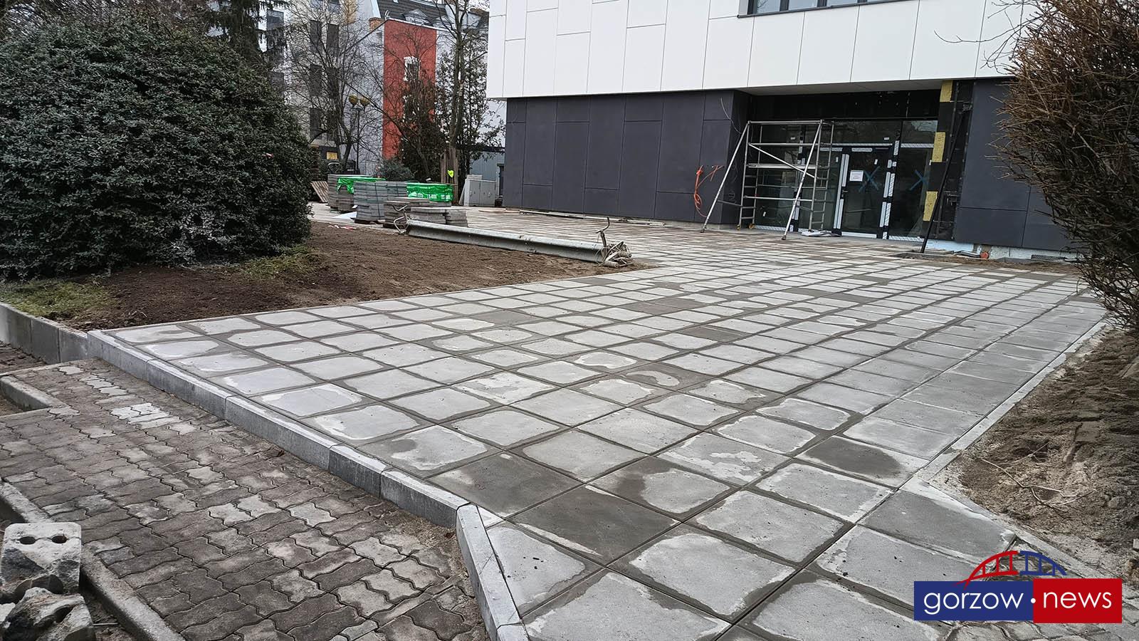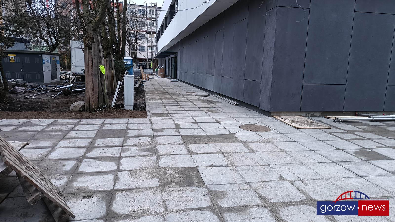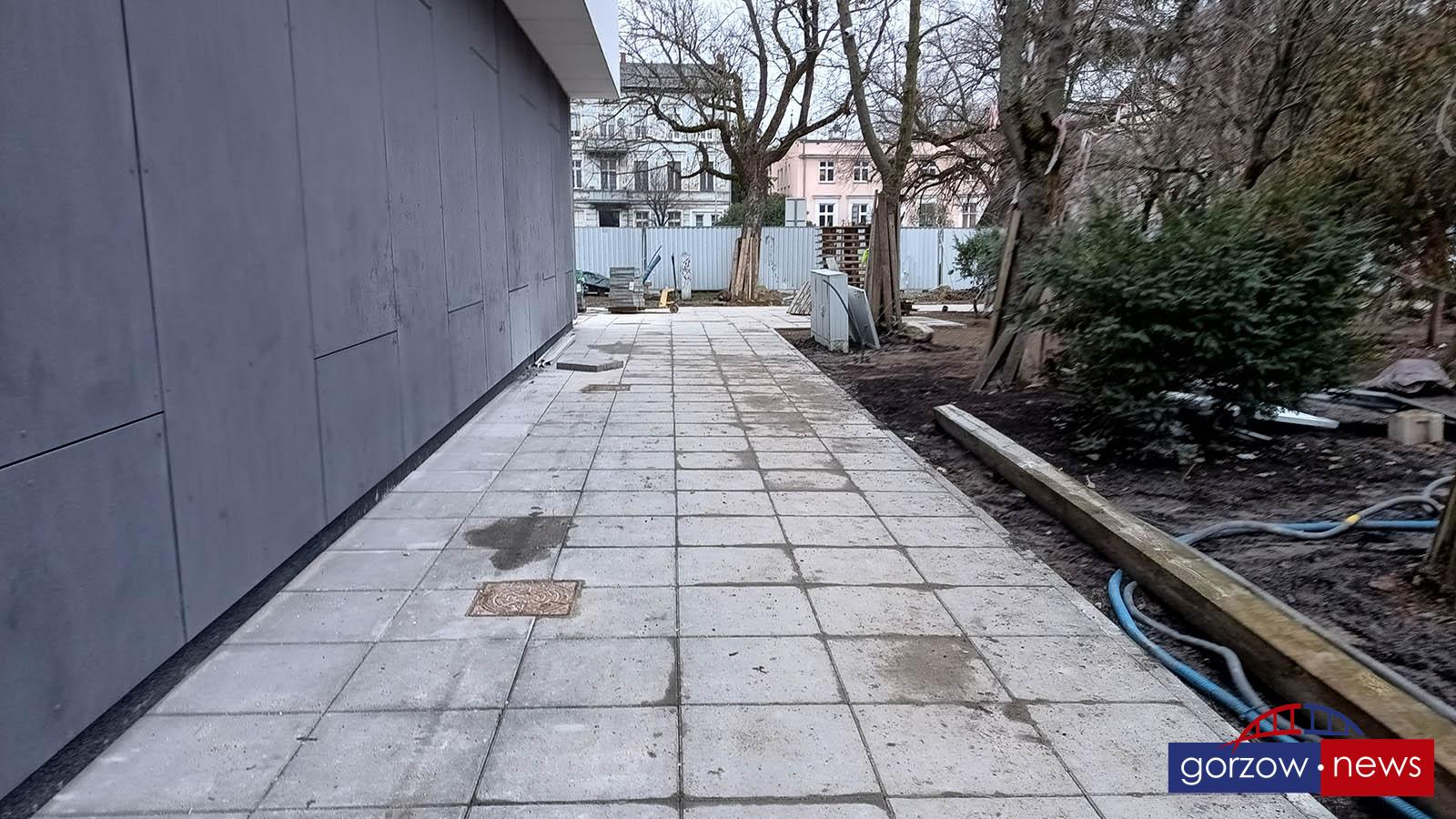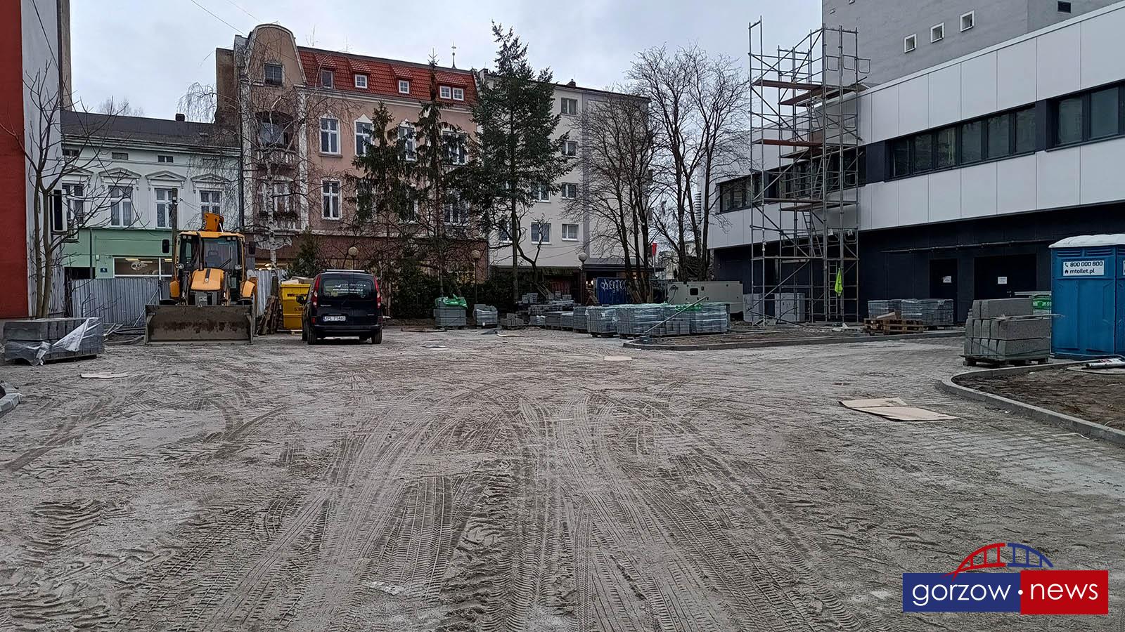 Postępy w pracach przy wykańczaniu sali koncertowej dla Miejskiego Centrum Kultury w przebudowanym budynku po banku PEKAO zaprezentowaliśmy dziś na łamach GORZÓW.NEWS w tekście – Zajrzeliśmy do budowanej sali koncertowej MCK! Jak postępy? Kiedy pierwszy koncert? (zdjęcia). Teraz spoglądamy na zmieniającą się przestrzeń wokół budynku.