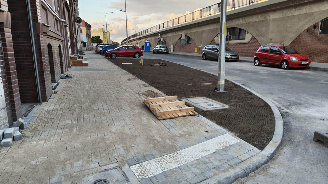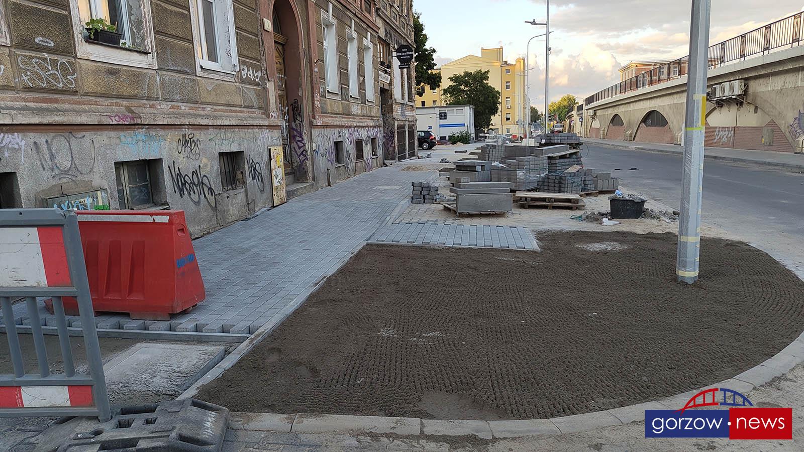 Na środę (tj. 16 lipca) zaplanowano układanie ostatniej warstwy ścieralnej asfaltu na przebudowywanym odcinku ul. Spichrzowej. Obecnie trwają ostatnie prace wykończeniowe. Miejscami układany jest jeszcze chodnik, czy trwa poziomowanie studzienek.