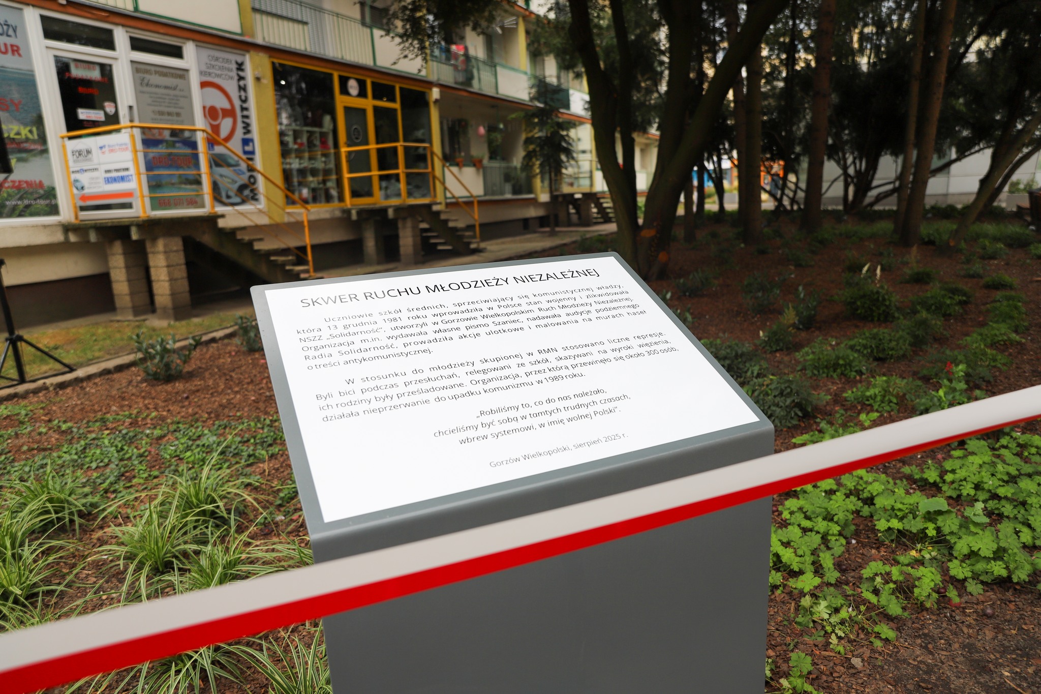 Obchody 45-lecia NSZZ „Solidarność” w regionie gorzowskim rozpoczęły się uroczystością nadania skwerowi przy ul. Pocztowej miana „Ruchu Młodzieży Niezależnej”. Uroczystości potrwają kilka dni. – Tam obok, 100 metrów stąd był konspiracyjny lokal. Ten skwer to nie jest przypadek. Tam tworzył się „Szaniec”, Sokół”, przygotowywaliśmy Feniksa, tam był nasz punkt konspiracyjny, który nigdy nie wpadł. Nigdy nie zaliczył wpadki. My musimy tworzyć tożsamość, tożsamość lubuską, tożsamość gorzowską, nie musimy się wstydzić Gorzowa lat. 80. Trzeba przekazać tę historię następnym – powiedział przewodniczący Ruchu Młodzieży Niezależnej w Gorzowie, Marek Rusakiewicz.