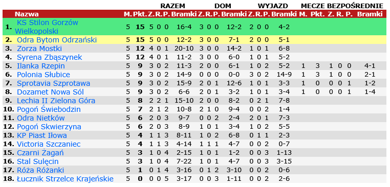 Warta gola na 1:2 straciła w Jeleniej Górze w samej końcówce spotkania. Przegrana z Karkonoszami jest już trzecią porażką warciarzy w tym sezonie, którzy zajmują w ligowej tabeli miejsce w strefie spadkowej. Natomiast w spotkaniu na czele czwartoligowych rozgrywek Stilon wysoko pokonał w sobotę w Gorzowie Zorze Mostki i w ligowej tabeli prowadzi z kompletem punktów.