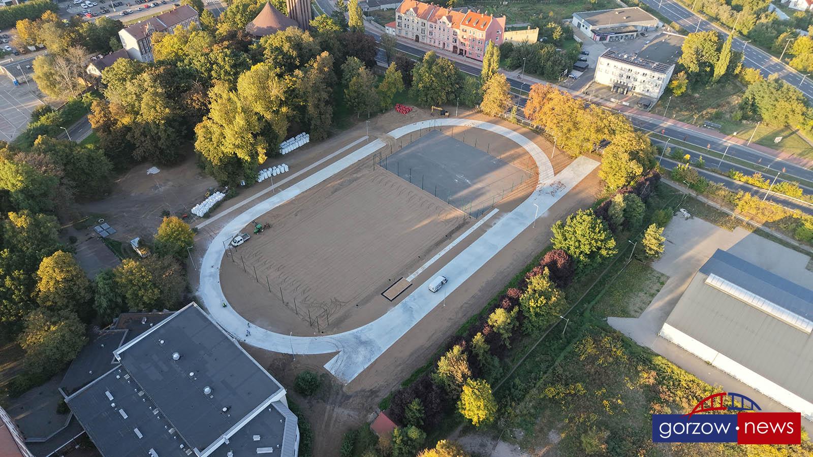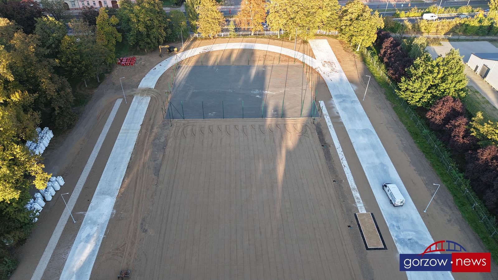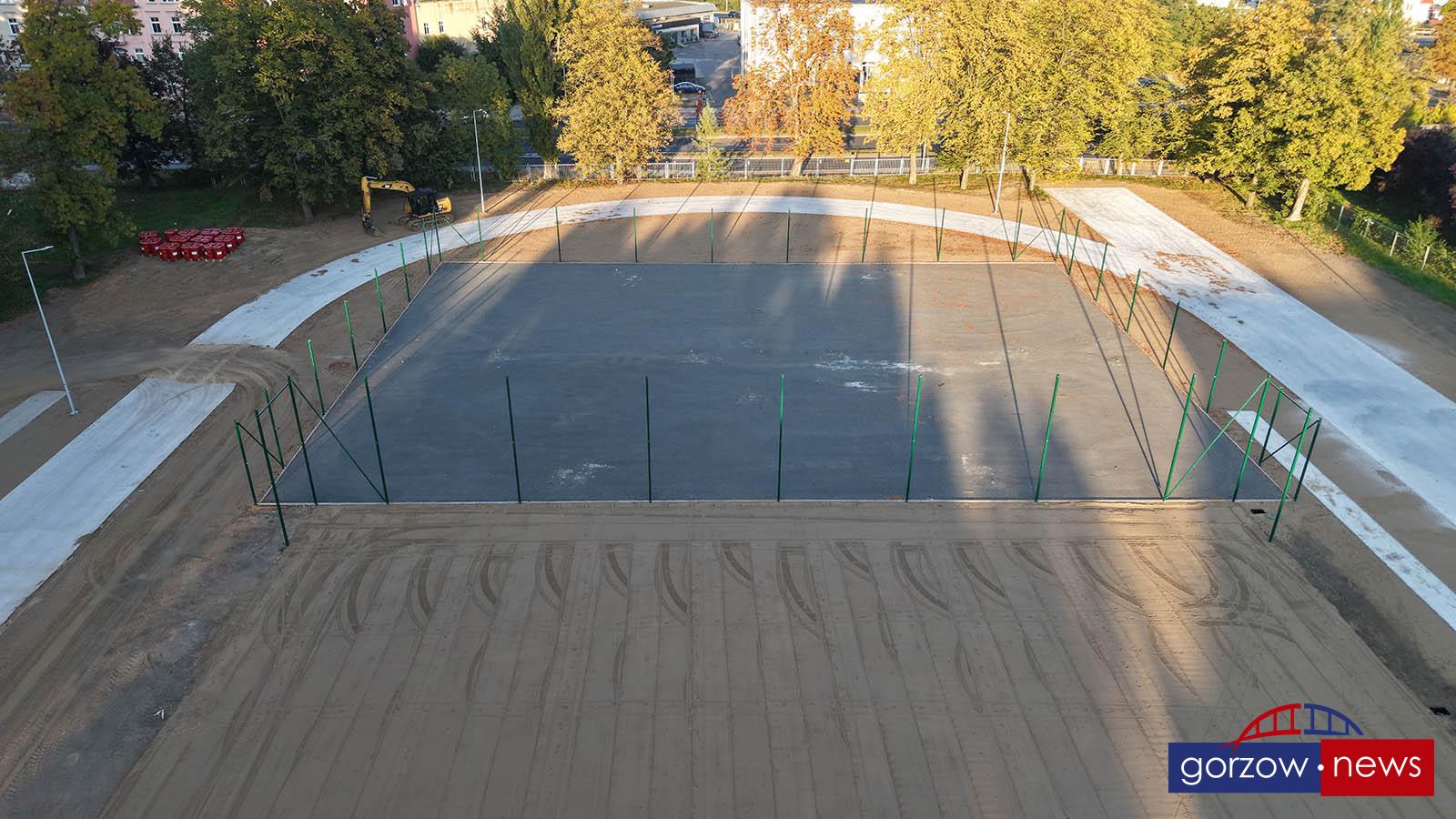 Dwa miesiące później znów zerkamy z lotu ptaka na budowany kompleks boisk wielofunkcyjnych przy drugim liceum