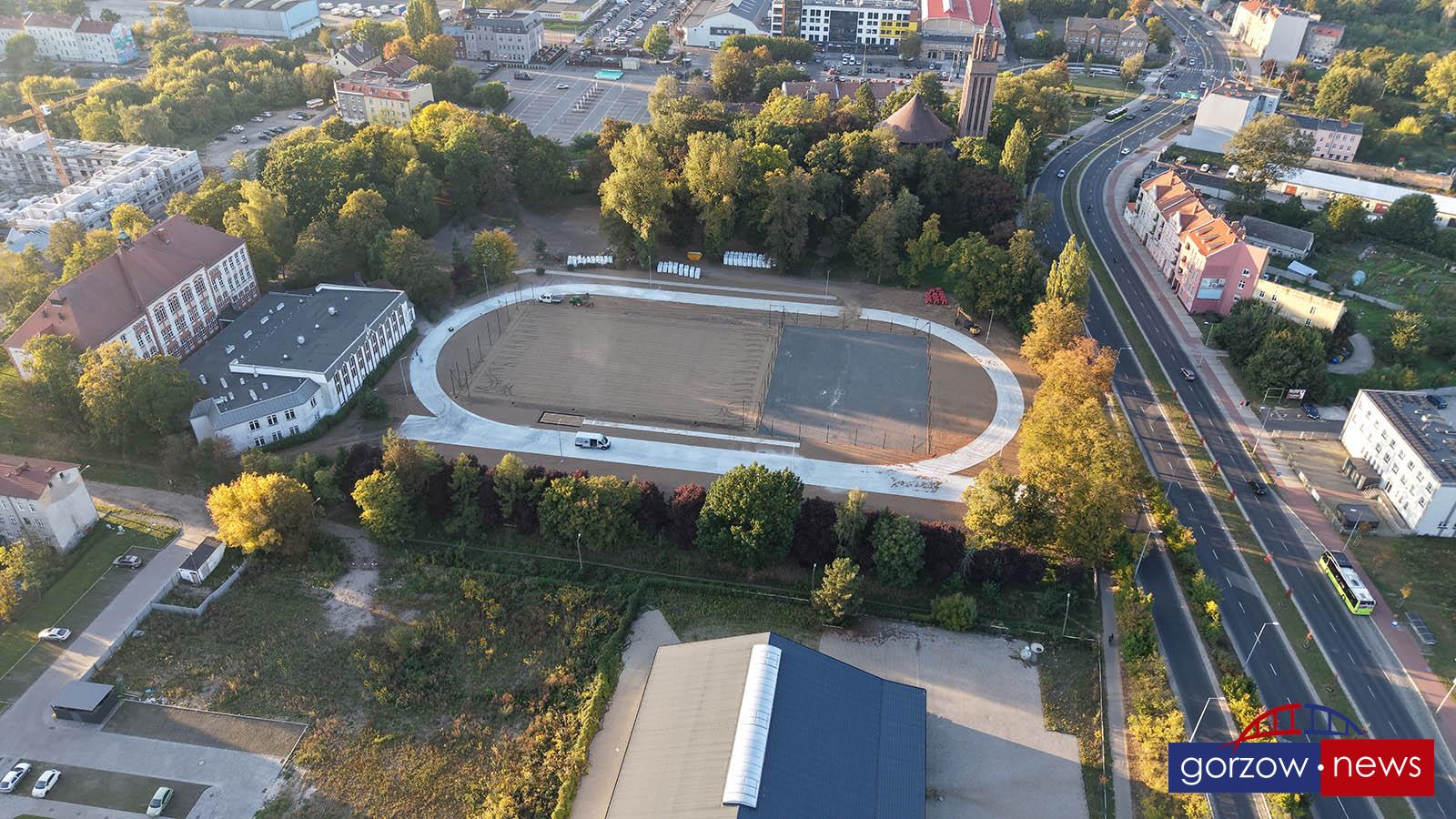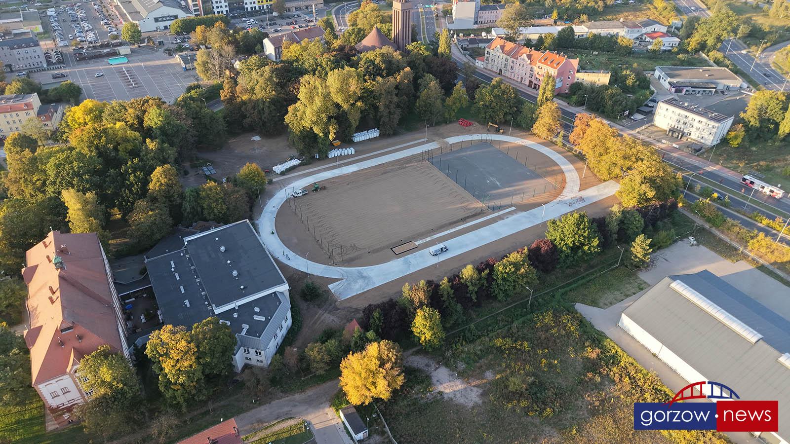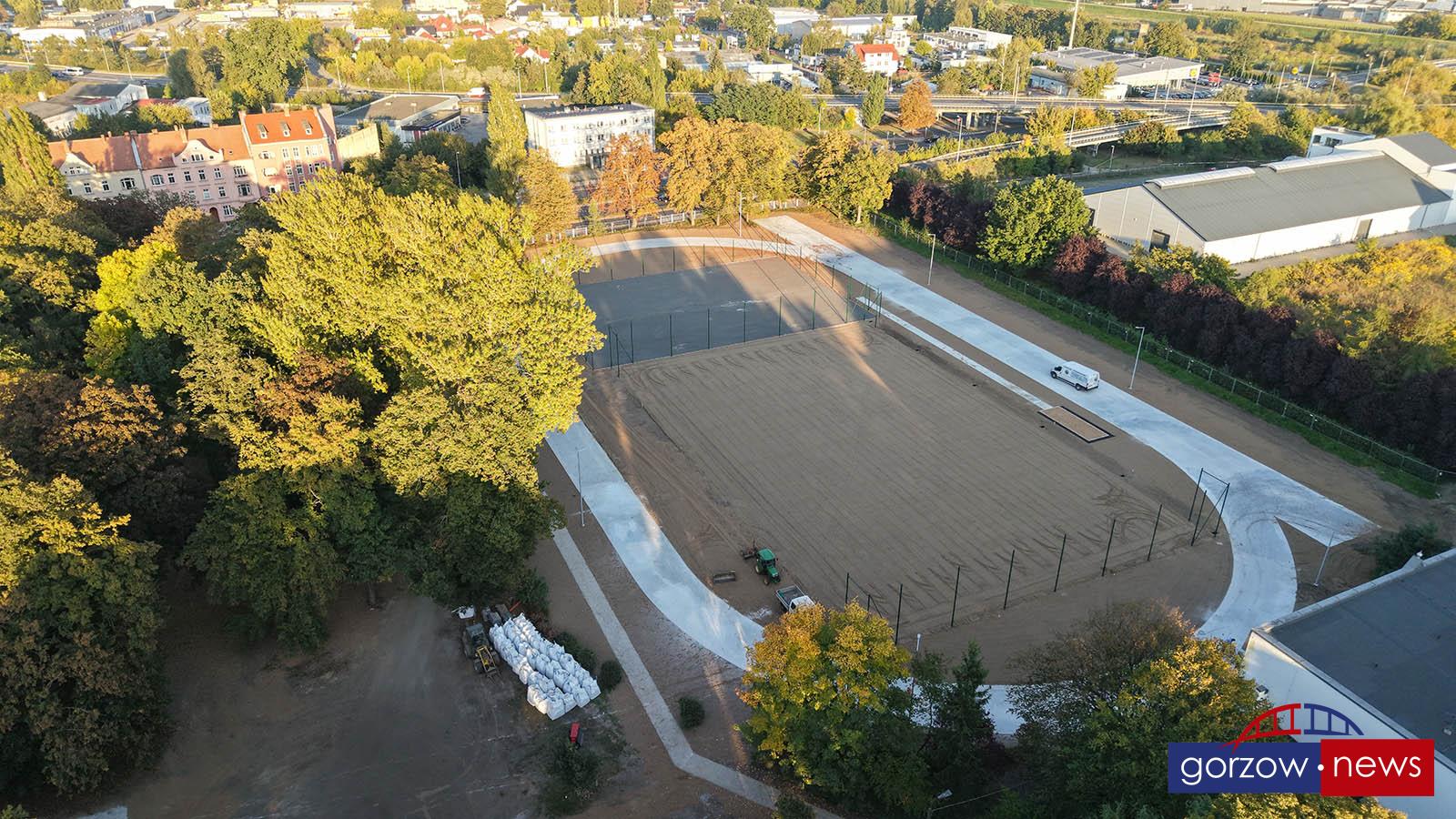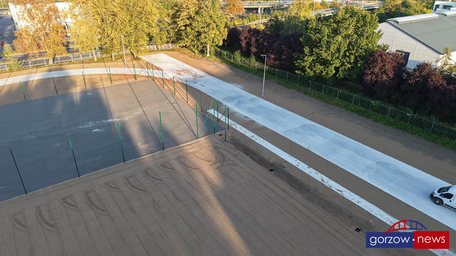 Dwa miesiące później znów zerkamy z lotu ptaka na budowany kompleks boisk wielofunkcyjnych przy drugim liceum