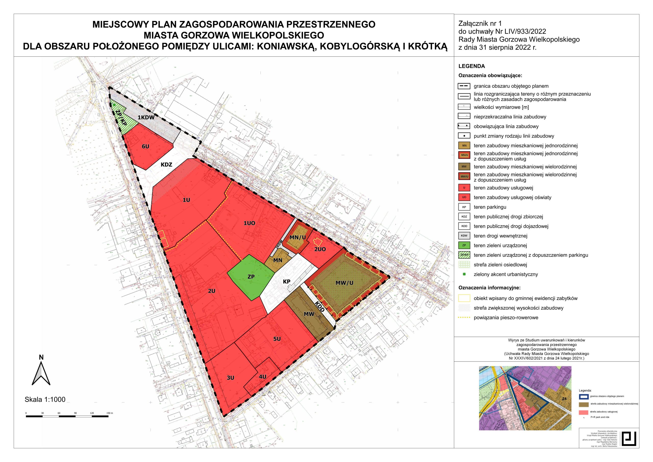 Wjazd na działkę i do przyszłego parku handlowego ustalono od ul. Kobylogórskiej i zaznaczono na mapie poniżej symbolem 1KDW.