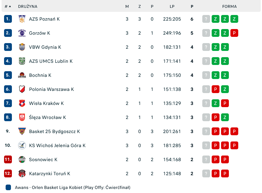 Tabela (aktualizacja: 18.10.2025 r., 21:00):