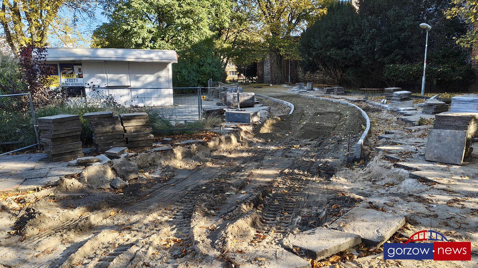 Już ponad miesiąc trwa budowa ścieżki rowerowej wzdłuż ul. Jagiełły. Wykonawca inwestycji rozpoczął od prac na skwerze przy murach obronnych, gdzie przyszła ścieżka rowerowa na chwilę odbija od jezdni ul. Jagiełły ze względu na przystanek autobusowy. Na miejscu rozebranego dotychczas chodnika i podbudowy drogi powstaje nowa nawierzchnia i już widać, że przebudowany odcinek mocno będzie się odróżniać od pozostałego. Szkoda więc, że przy okazji tej inwestycji nie przygotowano również przebudowy całego skweru. Pozostaje mieć tylko nadzieję, że zostanie on w najbliższym czasie również wyremontowany z zachowaniem tych samych materiałów…