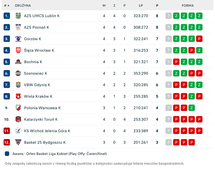 Tabela (aktualizacja 26.10.2025 r., 19:00):