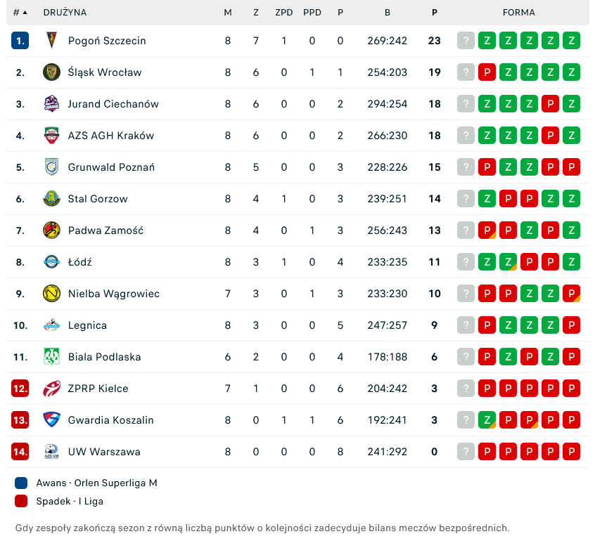 Tabela (aktualizacja 9.11.2025 r., 12:00)