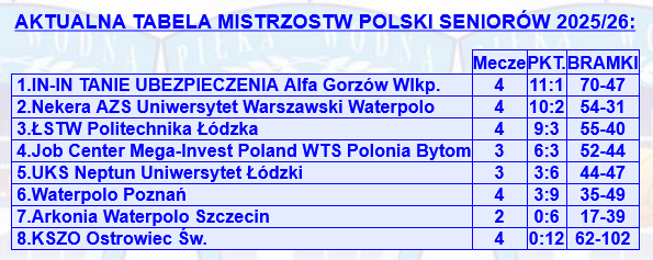 W spotkaniu 4. rundy Mistrzostw Polski w piłce wodnej Alfa Gorzów na basenie Słowianki pokonała w sobotę Job Center Mega-Invest Poland WTS Polonię Bytom 17:14. Gorzowianie są niepokonani i prowadzą w ligowej tabeli. Kluczowy dla losów całej rywalizacji o Mistrzostwo Polski może okazać się grudzień – nasz zespół rozegra w tym czasie cztery wyjazdowe mecze. Ostatni, tuż przed samymi świętami z obrońcą tytułu – Nekerą AZS Uniwersytetem Warszawskim.
