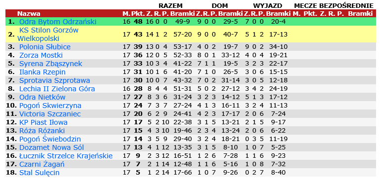 Lechia II Zielona Góra – Odra Bytom Odrzański (odwołany z powodu złego stanu boiska)