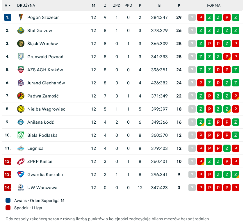 Tabela (aktualizacja, 6.12.2025 r. 21:30):