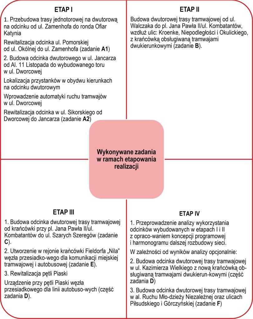 Drugim ważnym elementem projektów jest budowa torowiska wzdłuż ulicy Jancarza w kierunku dworca kolejowego wraz z nowym centrum przesiadkowym oraz modernizacją odcinków przy ul. Pomorskiej i ul. Sikorskiego. Te działania mają usprawnić ruch tramwajowy w rejonie centrum i poprawić połączenia z kluczowymi miejscami w mieście.