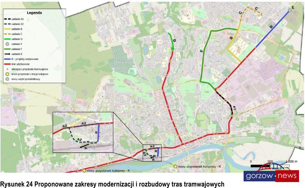 Modernizacja sieci tramwajowej w Gorzowie nie ogranicza się tylko do nowych odcinków – plan obejmuje przebudowę istniejących torowisk, budowę drugiego toru tam, gdzie dotychczas był tylko jeden, oraz modernizację podstacji i infrastruktury towarzyszącej. Dzięki środkom unijnym miasto otrzymało 180 mln zł na wsparcie projektu, które posłużą zarówno budowie nowej trasy, jak i zakupowi nowoczesnych tramwajów oraz modernizacji torowisk i zajezdni.