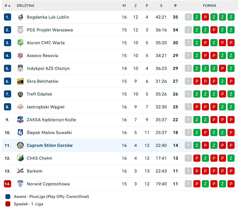 W meczu 17. kolejki PlusLigi Cuprum Stilon Gorzów pokonał Barkom-Każany Lwów 3:0. Przed spotkaniem obie drużyny miały po jedenaście oczek – tyle samo, co ostatnia drużyna w tabeli. Gorzowianie zdobyli więc niezwykle cenne trzy punkty w walce o utrzymanie. Ogromnych emocji dostarczyła trzecia partia, w której gospodarze przegrywali 20:24, ale zdołali obronić cztery piłki setowe i wygrać 29:27.