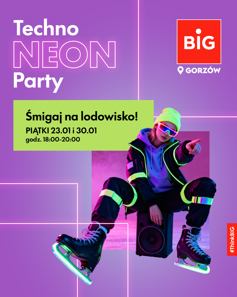 Podczas wydarzenia lodowisko w BIG Gorzów zostanie podświetlone neonową oprawą świetlną, a jeździe na łyżwach towarzyszyć będzie muzyka. Neonową atmosferę wydarzenia uzupełnią dodatkowe atrakcje dla uczestników. Na miejscu dostępne będą świecące w ciemności gadżety, takie jak neonowe pałeczki czy okulary, a także stanowisko z neonowymi farbkami do malowania twarzy. Techno-Neon Party to propozycja na aktywne spędzenie zimowego wieczoru w przestrzeni parku handlowego.