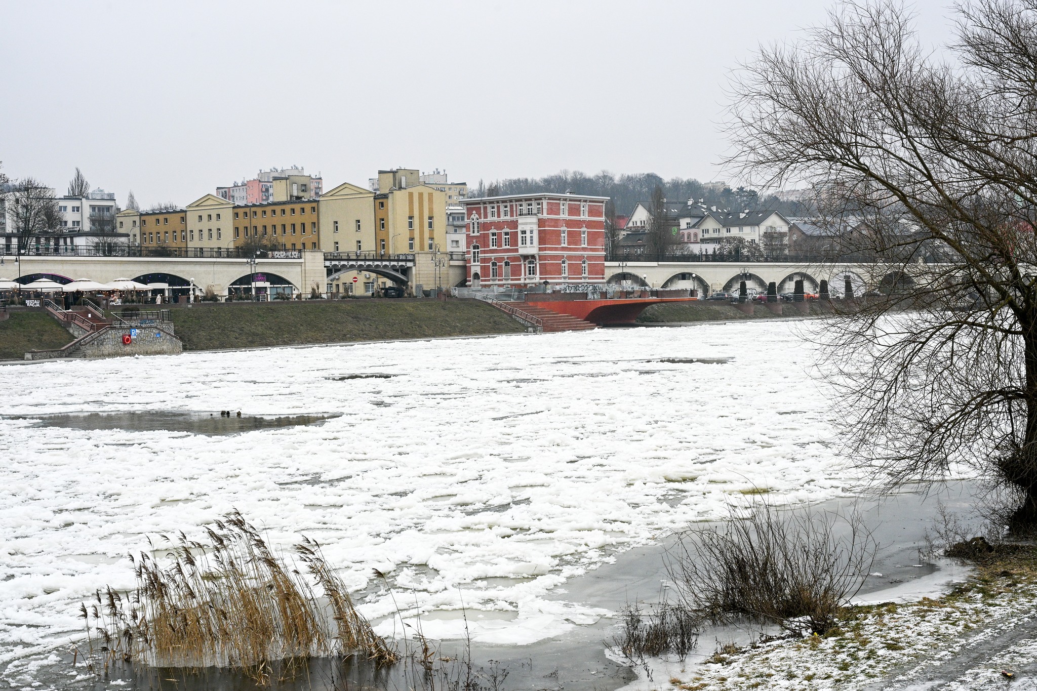 Ze względu na wysoki stan wody oraz oblodzenie dolnego tarasu bulwarów, wejścia na ten poziom zostały zamknięte i zabezpieczone taśmami ostrzegawczymi. Działania mają charakter prewencyjny i służą zapewnieniu bezpieczeństwa mieszkańców.