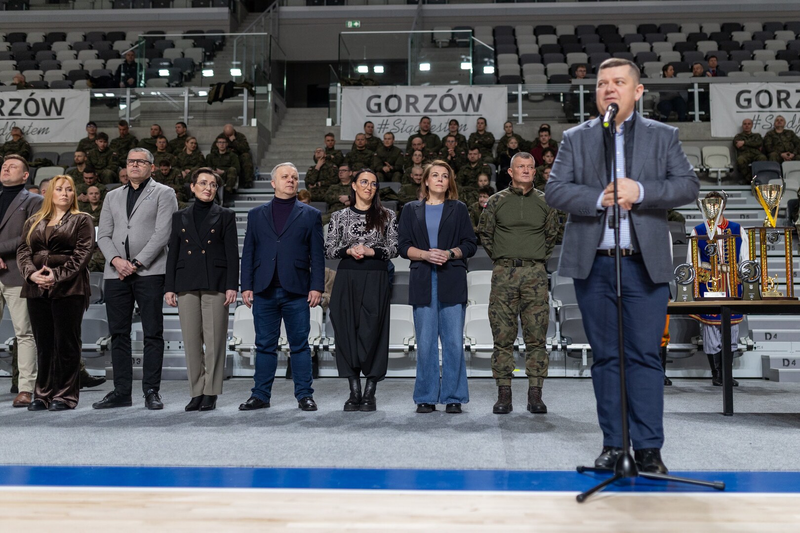 – Płynie w Was gorąca krew, która za moment tutaj w Arenie Gorzów rozgrzeje parkiet i będzie widać w was wolę walki i zwycięstwa. Życzę wam żebyście zawsze z taką silą przystępowali do każdego zadania i do tego żebyśmy mogli jeszcze wielokrotnie pokazać, że siła jest w jedności, we współpracy i to daje nadzieję na to, że w naszym kraju będzie jeszcze piękniej – powiedział wojewoda lubuski Marek Cebula.