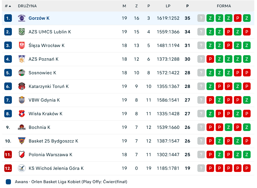 Już w niedzielę gorzowianki zmierzą się w Lublinie z Lotto AZS UMCS. Będzie to bardzo ważny mecz dla rozstawienia zespołów w rundzie zasadniczej. Jeśli gorzowianki wygrają w Lublinie, to na dwie kolejki przed końcem sezonu zasadniczego zapewnią sobie pierwsze miejsce w ligowej tabeli przed fazą play-off. Oznaczać to będzie, że w każdej z rund play-off ewentualny piąty mecz rozegrany zostanie w Arenie Gorzów. Jeśli gorzowianki przegrają, to ważny będzie dokładny wynik. W pierwszej rundzie w Gorzowie zespół wicemistrzyń Polski zwyciężył 91:75, co daje nam w bezpośredniej rywalizacji 16. punktów przewagi. Jeśli więc przegramy mniejszą ilością punktów, a w ostatnich dwóch meczach sezonu zasadniczego (w Gorzowie z Poznaniem i na wyjeździe w Warszawie) zwyciężymy, to bez oglądania się na Lublin również zajmiemy pierwsze miejsce. Krótko: cele na niedzielę są dwa: pierwszy: wygrać i zapewnić sobie pierwsze miejsce, drugi: jeśli wygrać się nie da, to przegrać max 15. punktami.