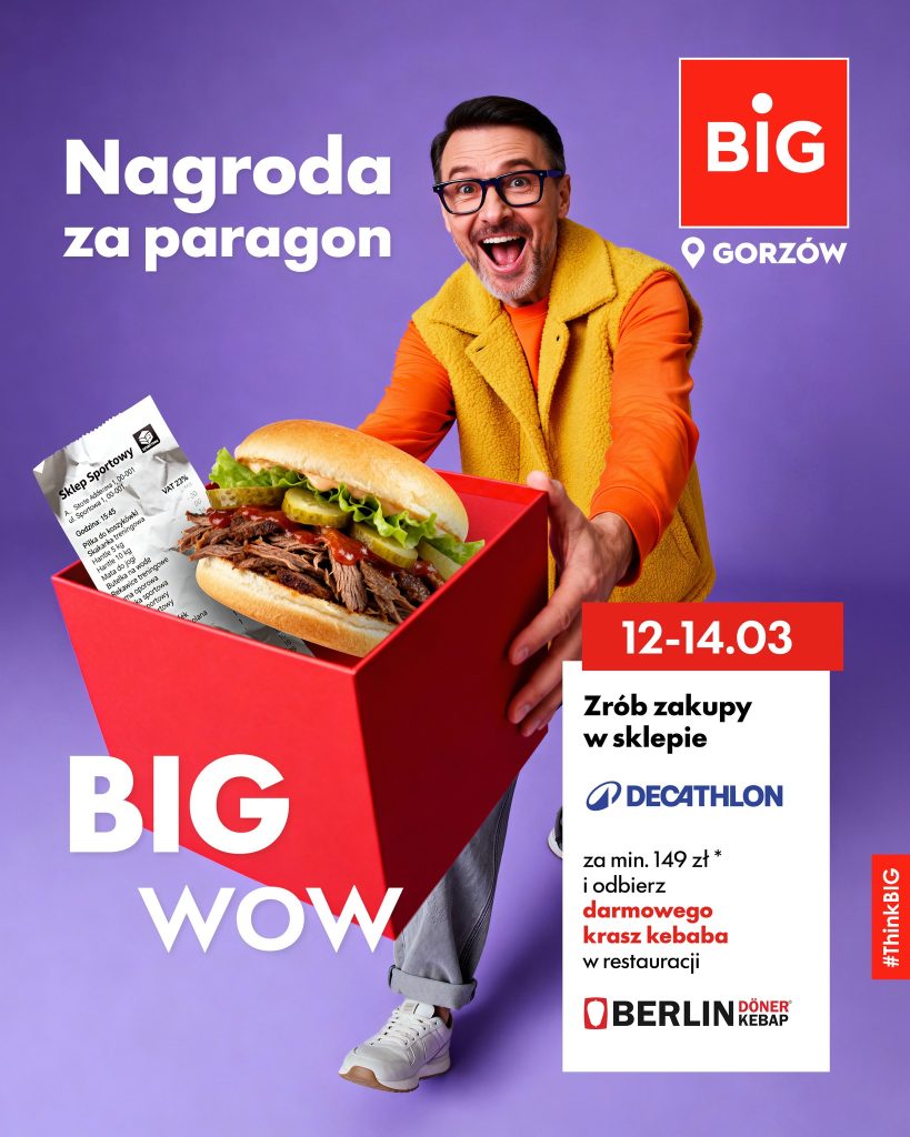 W dniach 12-14 marca klienci parku handlowego BIG Gorzów będą mogli skorzystać z atrakcyjnej promocji przygotowanej we współpracy z siecią Decathlon oraz Berlin Döner Kebap.