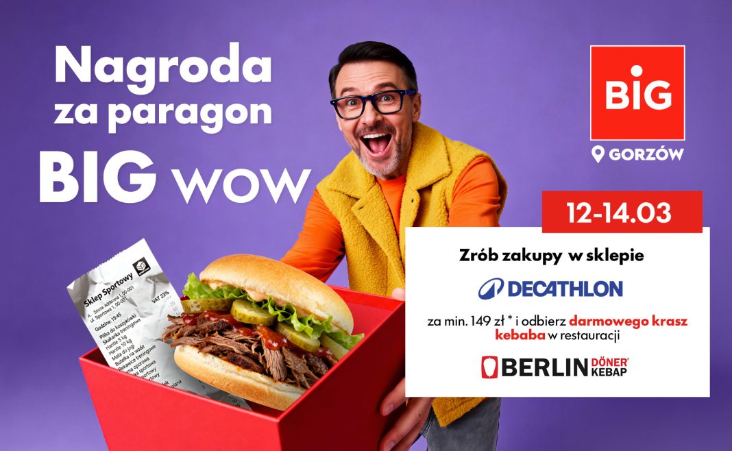 W dniach 12-14 marca klienci parku handlowego BIG Gorzów będą mogli skorzystać z atrakcyjnej promocji przygotowanej we współpracy z siecią Decathlon oraz Berlin Döner Kebap.