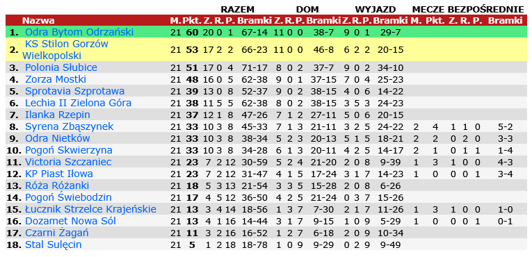 W spotkaniu 21. kolejki III ligi III grupy Stilon Gorzów pokonał KP Piast Iłowa 2:1 i utrzymał drugie miejsce w ligowej tabeli. Do pierwszej Odry gorzowianie tracą siedem oczek. Grano także w niższych ligach. Wszystkie wyniki poniżej.