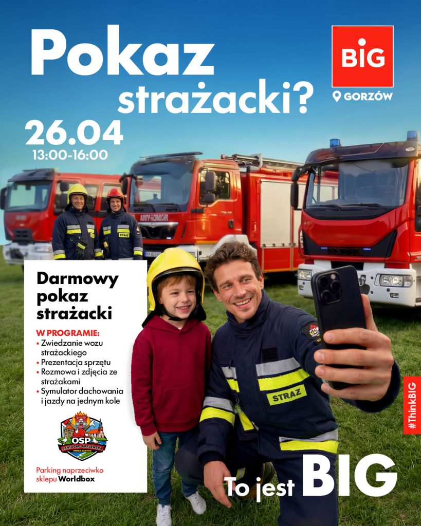 Już w tą niedzielę, tj. 26 kwietnia w godzinach 13:00-16:00 na terenie parku handlowego BIG Gorzów odbędzie się Pokaz Strażacki, wydarzenie skierowane do rodzin i lokalnej społeczności.
