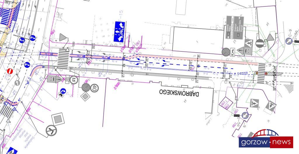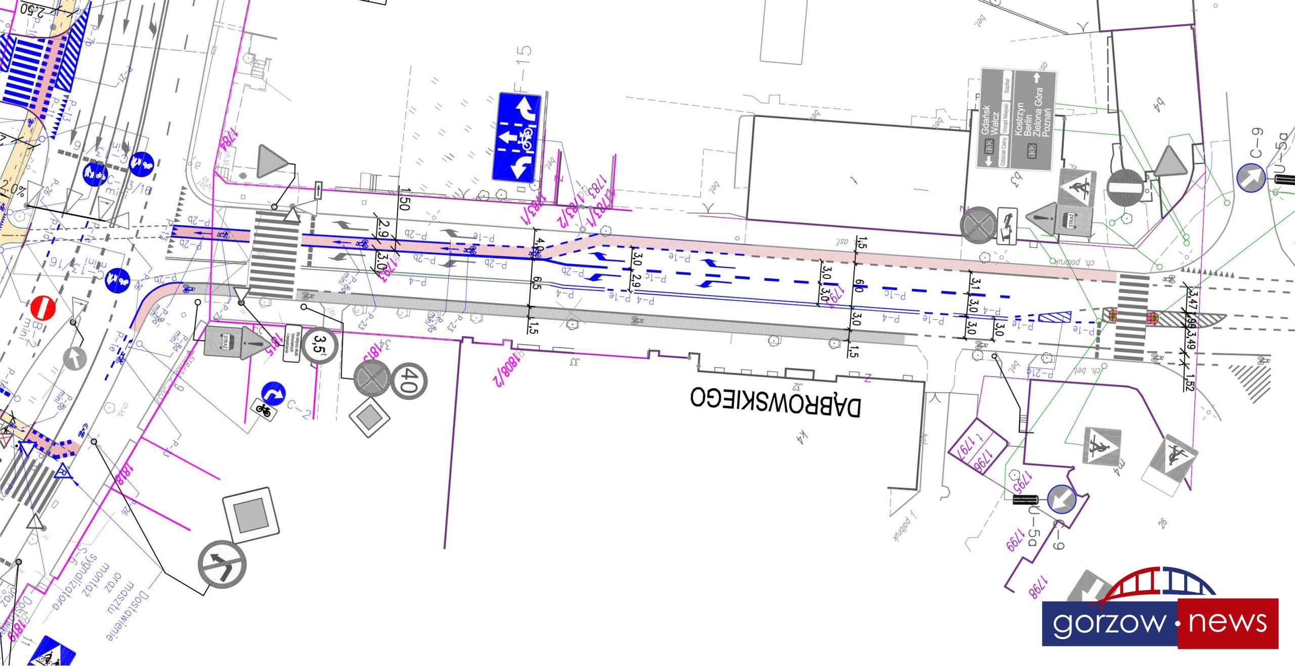 W ramach korekty organizacji ruchu nie zmienia się przebieg pasa rowerowego – pozostanie on w obecnej lokalizacji. Modyfikacje obejmą natomiast oznakowanie poziome i pionowe na ul. Dąbrowskiego.